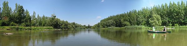 samstag früh begrüßte uns herrliches paddelwetter. joe stellte nach dem frühstück sein auto am campingplatz in kimle ab, jürgen und günter ihre autos in mescèr, unserem ziel für sonntag. nachdem alle wieder in halaszi eingetroffen waren, ging unsere tour los. sie führte uns zum teil durch völlig unberührtes augebiet, das uns vergessen ließ, dass nur wenige meter dahinter bebaute felder sind, strassen vorbeiführen oder dörfer liegen. besonders gut gefallen haben mir diese kleinen wunder der natur, wenn aus einem im wasser liegenden abgebrochenen baumstamm neues leben in form verschiedenster pflanzen erwächst oder ein scheinbar bereits abgestorbener baum voll von neuen trieben ist. viele libellen haben uns begleitet und bildeten einen kontrast zum ockerfarbenen wasser dieses steppenflusses. huebsch darauf unsere boote. zwei rote und zwei grüne. und darinnen gut aufgelegte leute, die auch an den etwas träge fliessenden stellen mit lustigen erzählungen die anstrengung des paddelns vergessen lassen. und auch der kleinen helene scheint es zu gefallen. dann eine stelle wo kurz umtragen werden muss. mittagszeit, aber wir suchen uns ein paar hundert meter weiter einen pausenplatz. nach unserer mittagspause auf einer schattigen wiese bei mariakalnak hatten wir kurze zeit einen frosch an bord. ich habe ihm dann das leben gerettet, ihn ins wasser gesetzt und in die freiheit entlassen. am nachmittag sind wir nach etwa 30 km paddeln am campingplatz in kimle an land gegangen, wo später auch zwei gruppen junger burschen angelegt haben, denen wir zuvor am fluss immer wieder begegnet sind. der platz ist sehr gepflegt und der chef des campingplatzes hat extra für uns koteletts bzw. fisch gegrillt. es war ein sehr netter abend und wir gingen satt und zufrieden schlafen.
